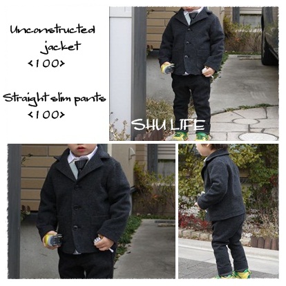 昨日着たアンコンジャケット+ストレートスリムパンツを着せて行きました。