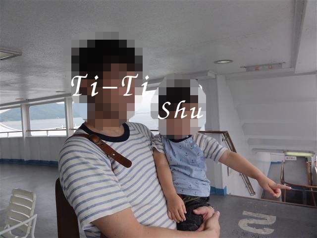大きなカーフェリーに乗るのは、初めてのShu。