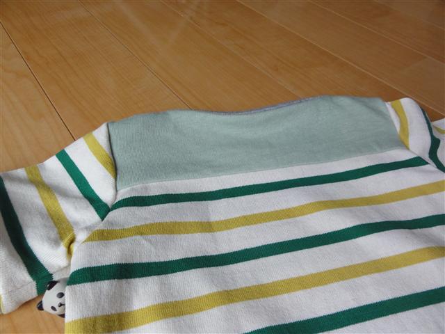 切替に使ったラフィー天竺のもえぎ。